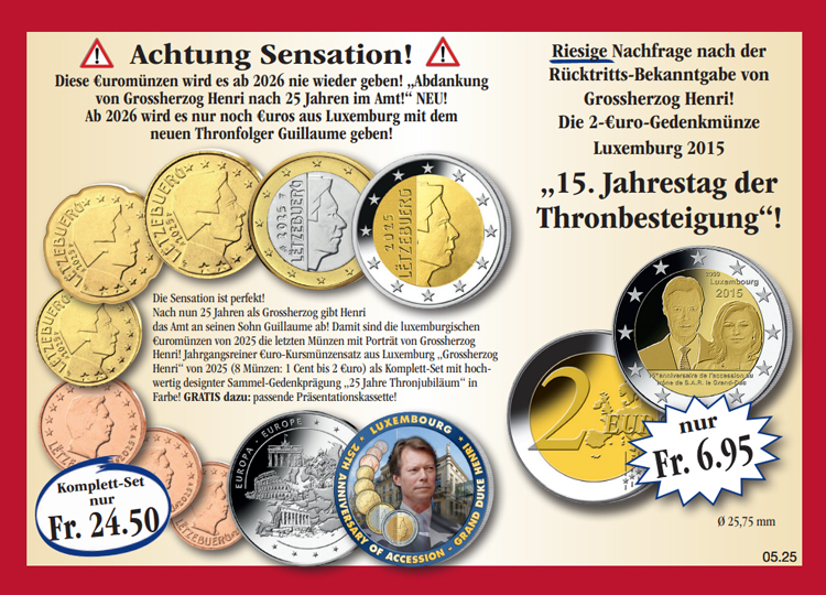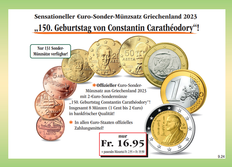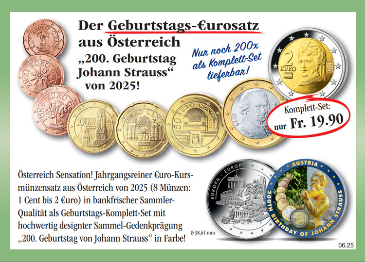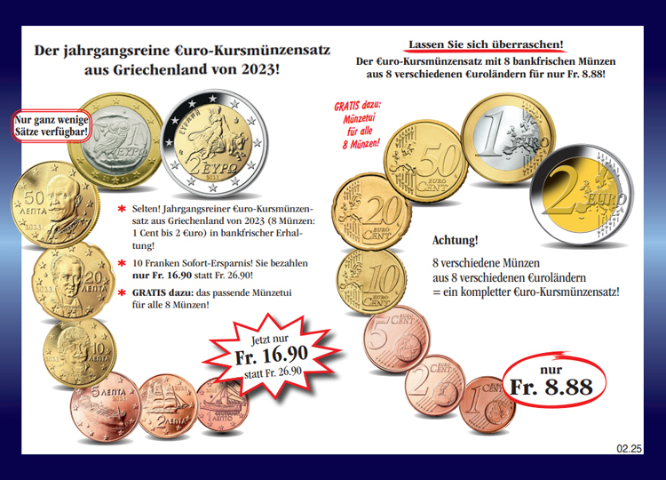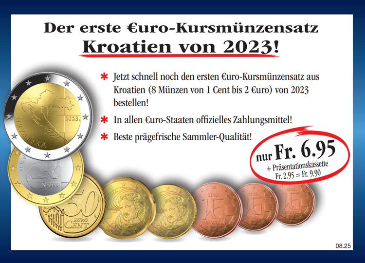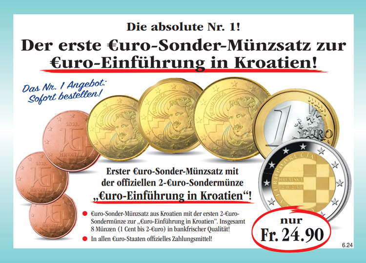 Warenkorb Sie haben bisher keine Artikel in Ihrem Warenkorb. Der erste Euro-Kursmünzensatz Kroatien von 2023! Sichern Sie sich noch heute den ersten Euro-Kursmünzensatz Kroatien von 2023 (8 Münzen: 1 Cent bis 2 Euro) in prägefrischer Sammler-Qualität, inklusive der passenden Präsentationskassette zum Sonderpreis von nur Fr. 9.90! Monatlich erhalten Sie eine weitere Ausgabe aus dieser Sammlung unverbindlich und ohne Kaufverpflichtung zur Ansicht. Sie haben bei jeder Lieferung ein 14-tägiges Rückgaberecht! Fr. 9.90 inkl. gesetzlicher MwSt. Menge: zzgl. anteilige Versandkosten (Porto, Verpackung, Versicherung) Dieses Produkt kann nur 5 Mal pro Kunde bestellt werden. Bei Fragen wenden Sie sich bitte an unseren Kundenservice. Ist das auch interessant für Sie?