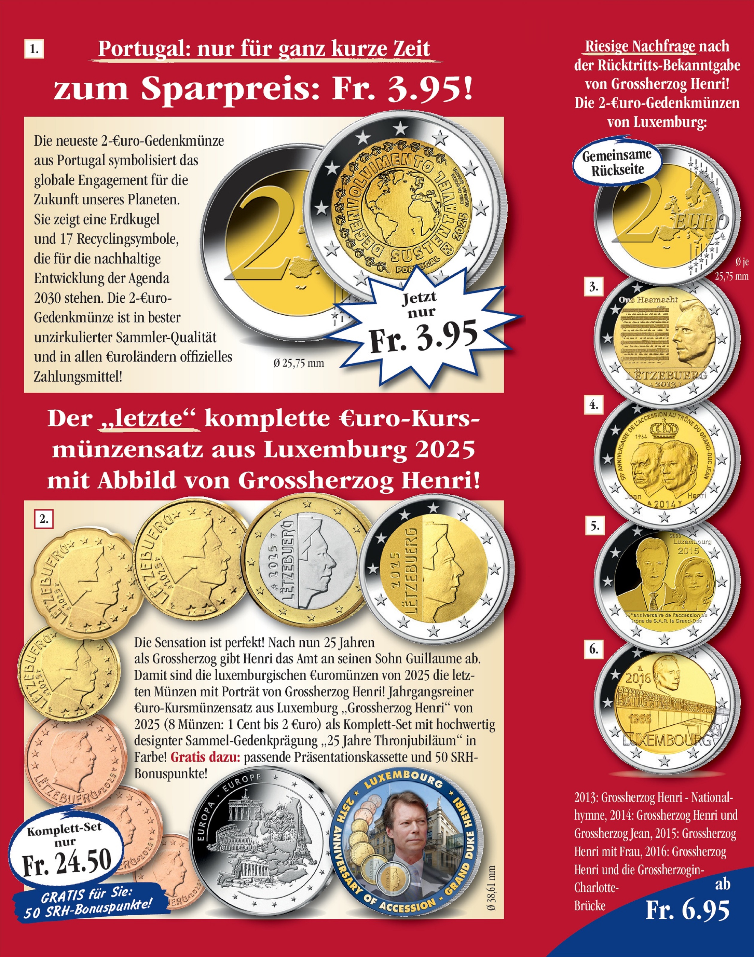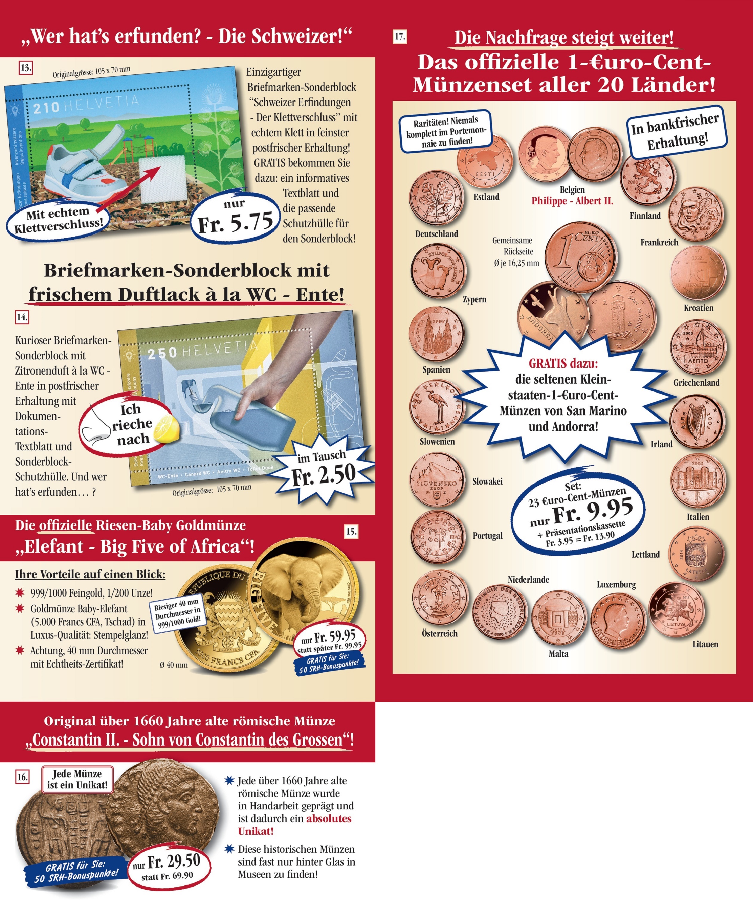 Vertrauens-Garantie/Widerrufsrecht: Ohne Angaben von Gründen können Sie Ihren Auftrag innerhalb von 14 Tagen widerrufen. Eine kurze Nachricht oder Rücksendung der Ware an SRH genügt. Sie tragen die unmittelbaren Kosten für die Rücksendung an Sir Rowland Hill AG, Schützenmattstrasse 46, 8180 Bülach ZH. Es gelten unsere AGB, die Sie unter www.srh-ltd.ch einsehen oder schriftlich bei uns anfordern können. Datenschutz-Hinweis: Die Verwendung Ihrer personenbezogenen Daten für Werbung erfolgt vertraulich und nur von SRH. Der Widerruf ist jederzeit möglich: Per Post an SRH oder E-Mail an datenschutz@srh-ltd.ch