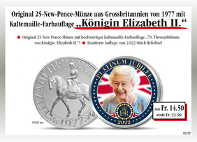 Die original 25-New-Pence-Münze von 1977 mit Kaltemaille-Farbauflage "Königin Elizabeth II."!