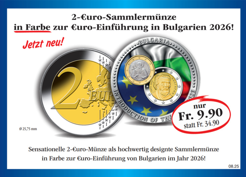 Die 2-Euro-Sammlermünze in Farbe zur Euro-Einführung in Bulgarien 2026!