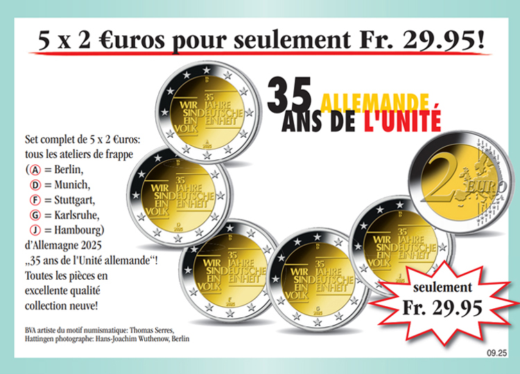 Panier Vous n'avez pas encore d'article dans votre panier. Le set spécial de 5 x 2 DM „Les plus grands chefs d'Etat d'Allemagne“! Assurez-vous dès aujourd'hui le set spécial de 5 x 2 DM „Les plus grands chefs d'Etat d'Allemagne“ d'excellente qualité collection neuve au prix spécial de seulement Fr. 4.99 par pièce = au total Fr. 24.95 et recevez à rythme mensuel une autre émission de cette collection à l'examen et sans obligation d'achat. A chaque livraison, vous disposez d'un droit de restitution de 15 jours! Fr. 24.95 TVA légale incluse Quantité: Participation aux frais d'envoi en sus (port, emballage, assurance) Ce produit ne peut être commandé que 5 fois par client. En cas de question, contactez notre service clientèle. Cela pourrait aussi vous intéresser!