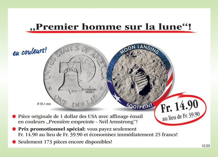 Panier Vous n'avez pas encore d'article dans votre panier. Le set des USA „Innovation - Dollar“ de 2025! Procurez-vous dès aujourd'hui le set des USA de l'année 2025 „Innovation - Dollar“, comprenant 4 pièces au total avec étui numismatique inclus,au prix spécial de seulement Fr. 17.50 et recevez à rythme mensuel une autre émission de cette collection à l'examen et sans obligation d'achat. A chaque envoi, vous disposez d'un droit de restitution de 15 jours! Fr. 17.50 TVA légale incluse Quantité: Participation aux frais d'envoi en sus (port, emballage, assurance) Ce produit ne peut être commandé que 5 fois par client. En cas de question, contactez notre service clientèle. Les dernières pièces de 1 cent de 2025 des USA! Procurez-vous dès aujourd'hui les dernières pièces de 1 cent de 2025 des USA, soit deux pièces de 1 cent (ateliers de frappe: Denver et Philadelphie) en qualité collection neuve avec étui numismatique inclus, au prix spécial de seulement Fr. 7.95 et recevez à rythme mensuel une autre émission de cette collection à l'examen et sans obligation d'achat. A chaque envoi, vous disposez d'un droit de restitution de 15 jours! Fr. 7.95 TVA légale incluse Quantité: Participation aux frais d'envoi en sus (port, emballage, assurance) Ce produit ne peut être commandé que 5 fois par client. En cas de question, contactez notre service clientèle. Cela pourrait aussi vous intéresser!