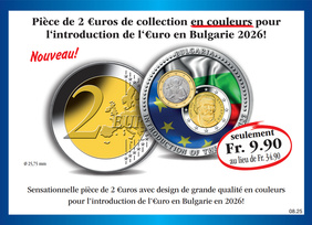 La pièce de collection de 2 euros en couleurs pour l'introduction de l'euro en Bulgarie en 2026!